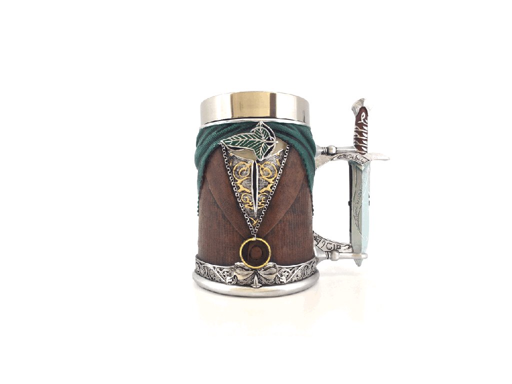 Krásný korbel pro milovníky magické Středozemě, hobitů a Pána prstenů! Korbel v podobě elfího pláště Frodo Pytlíka zdobí Prsten moci, ucho je tvarováno do meče Žihadla. Na zadní straně se nachází slova Galadriel: I ten nejmenší človíček může změnit chod budoucnosti , zasazený do elfího nápisu z Jednoho prstenu. Nerezová vnitřní část je vyjímatelná, což umožňuje jeho snadnou údržbu. Korbel není radno mýt v myčce nádobí a ohřívat v mikrovlnné troubě!Doplňkové parametry
