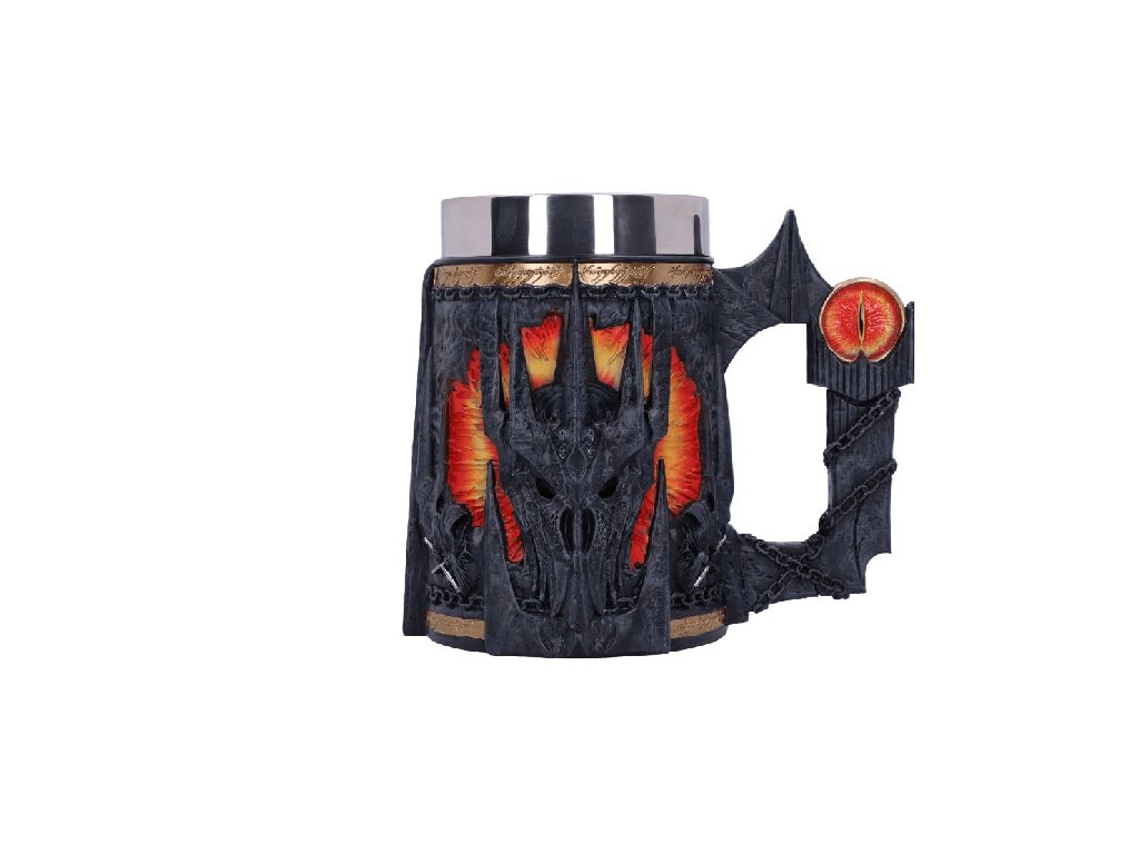Sauronův korbel se spoustou pěkných detailů bude jedinečným dárkem pro fanoušky fantasy ságy Pán prstenů! Korbel zdobí maska Temného pána z Mordoru, doprovázená dvojicí Nazgûlů - Prstenových přízraků. Horní část lemuje zlatý proužek s nápisem z Prstenu: Jeden prsten vládne všem... Korbel má uvnitř vyjímatelný nerezový insert, což umožňuje jeho snadnou údržbu. Korbel není vhodný do mikrovlnné trouby ani do myčky nádobí.Doplňkové parametry