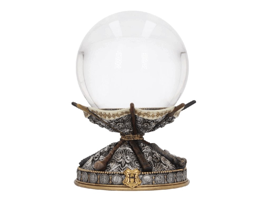 Krásná dekorace v podobě křišťálové koule a stojanu se sedmi malými kouzelnickými hůlkami a bradavickým erbem udělá radost fanouškům magického světa Harry Pottera. Hezký doplněk vaší čarodějné domácnosti nebo pracovny! Průměr koule je cca 11 cm.Doplňkové parametry