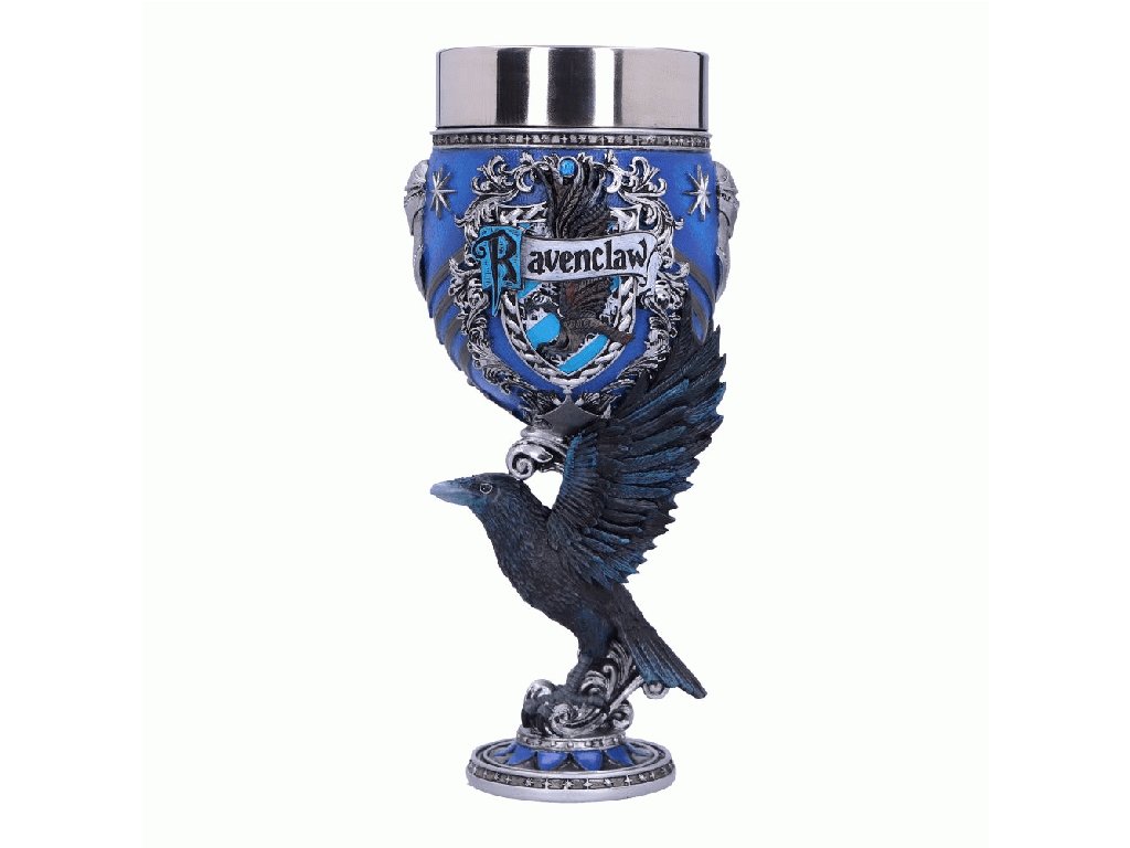 Až se napijete z krásného modrého poháru pro čarodějky a mágy Havraspáru, možná se vám bude chtít začít létat! Stopka poháru je tvořena havranem rozpřahujícím křídla. Jedinečný dárek pro milovníky příběhů Harry Pottera! Ručně malovaný pohár ze syntetické pryskyřice má vyjmutelný nerezový insert pro snadnou údržbu. Pohár není vhodný do mikrovlnné trouby ani do myčky nádobí.Doplňkové parametry